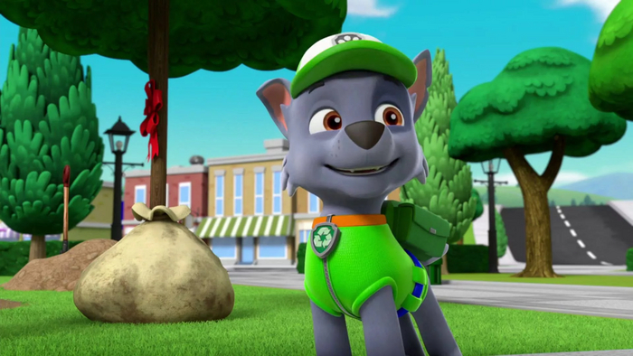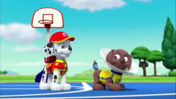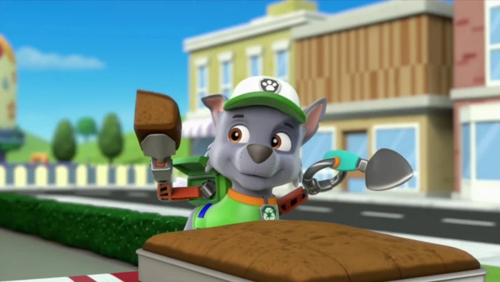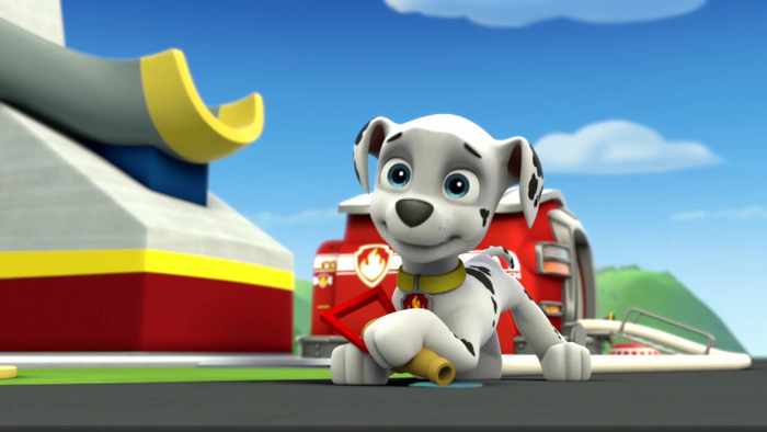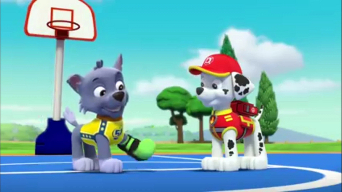 Рокки зачем-то вытащил какие-то вешалки и всякий хлам из своего грузовичка, а Райдер проверял свой усовершенствованный квадроцикл. Маршал конечно же наступил на вешалку и сбил всех щенков, а вешалка оказалась на хвосте Маршала