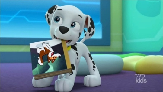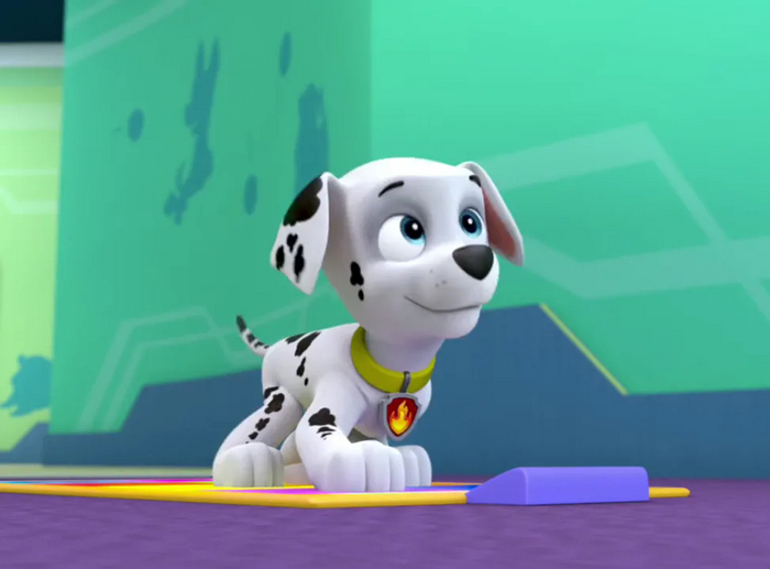 Щенки занимались щен-йогой и Маршалу какой-то шарик или мячик закрыл глаза и он сбил остальных щенков и вот так вот пошутил