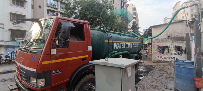 А это водовоз набирает воду, чтобы развести по домам, где её не хватает