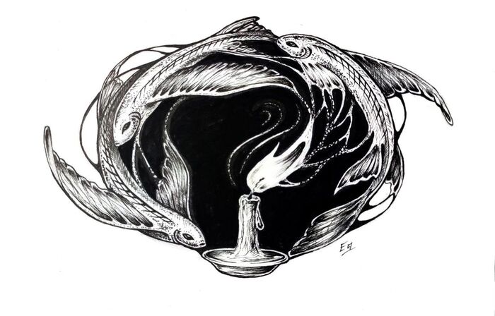 Тема пламени привела в замешательство - огонь и рыба плохо сочетаются, если дело не идет о кулинарии. Но зато если оооочень постараться, можно представить летучую рыбу мотыльками в какой-нибудь сюрреалистичной параллельной реальности.