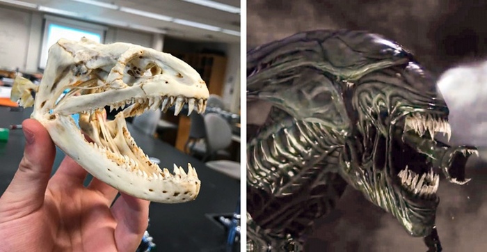 Должно быть, после такого заголовка воображение многих читателей радостно и охотно нарисовало образ чудовища, созданного изощрённой фантазией Ридли Скотта и ожившего в серии художественных фильмов. С другой стороны, вряд ли многие в курсе, что одно из самых жутких и захватывающих орудий монстра - выдвижная внутренняя челюсть - имеет вполне реальный прототип и является частью всем известного обитателя морских глубин.