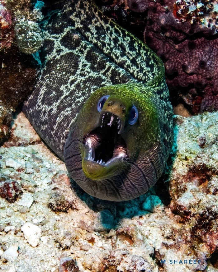 Улыбающаяся и немного нервная мурена. С мощной челюстью)