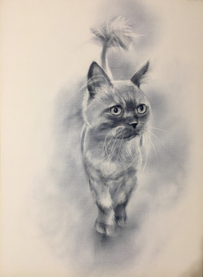 Он сидит и смотрит большими печальными глазами. Но как только я отхожу или выхожу в другую комнату, тут же начинает призывно мяукать.