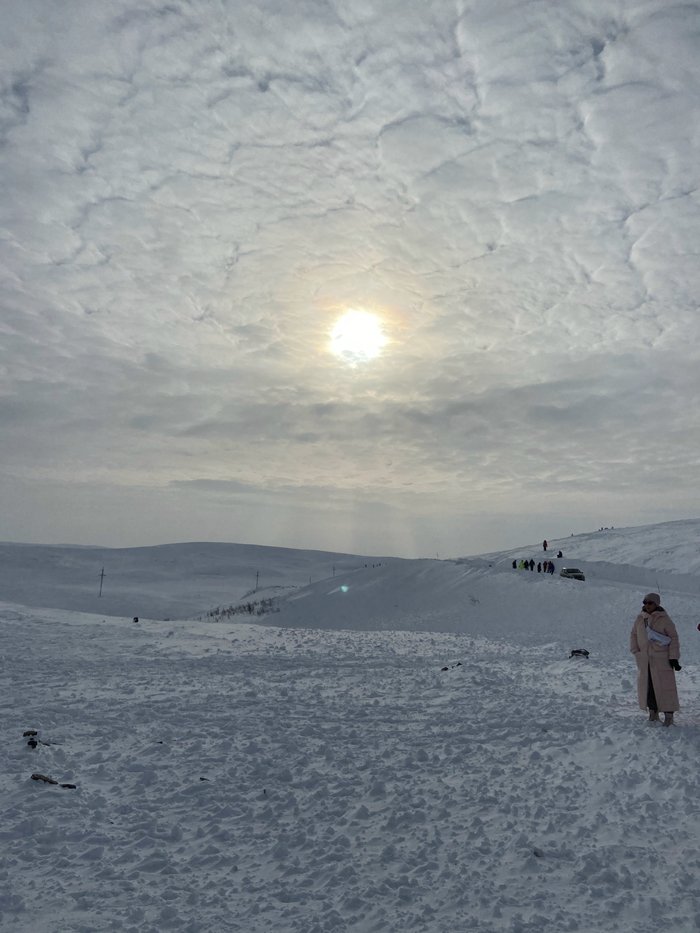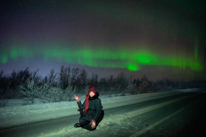 Водитель гнал что есть мочи, все условно и нагоняет жути. Сияние может быть, а может и не быть, некоторые ранее приезжавшие туристы, за три ночи так и не увидели его, а нам посчастливилось сразу. Специалисты смотрят тучность облаков, чтобы небо было чистое, а там оно очень низкое и если есть облака - не увидишь ничего. Ехали с час, потом Марине позвонили и сказали точное местоположение. Там все и случилось.