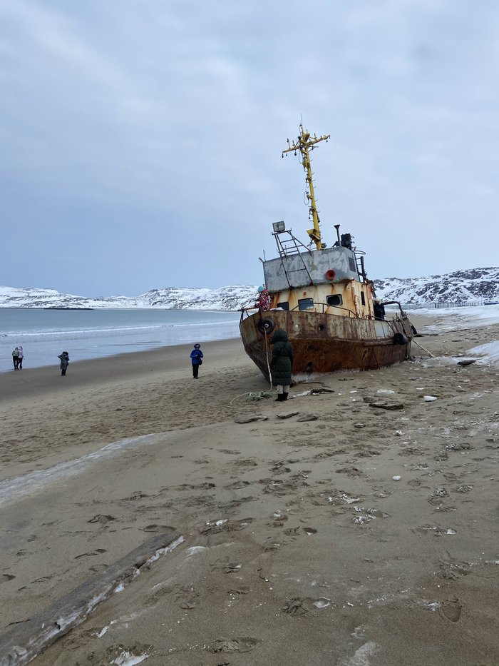 Посетили в тот день, край земли русской - посёлок Териберка. Известный по фильму Левиафан Звягинцева. Дорога к нему открылась только к 12:00, до этого три дня была закрыта - чистили от снега. В самом посёлке нет даже заправки (до ближайшей 85 км), и самое главное для туристов (а их везут туда автобусами) нет туалетов. На весь посёлок, как сказал гид, их четыре и все в «ресторанах».