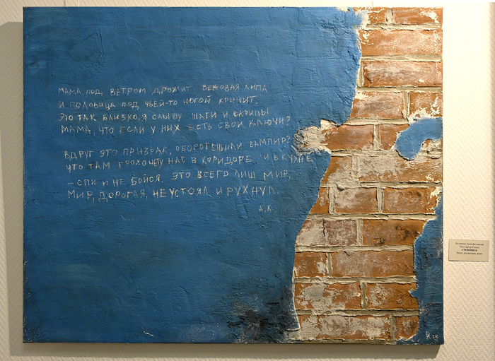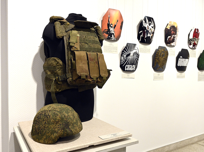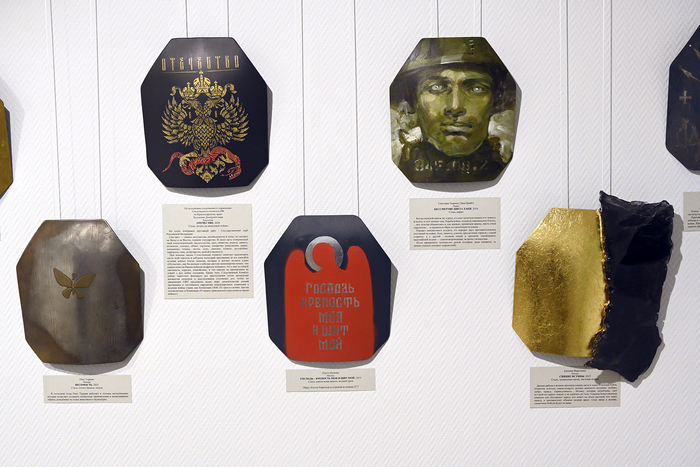 «Сейчас мы буквально живем на страницах учебника истории, и от того, какими они будут написаны, такими останутся для последующих поколений. Художники получили настоящие стальные плиты, которые имеют вес, фактуру, и это сразу задавало определенный настрой. Главный нравственный камертон выставки — настоящий бронежилет бойца, тяжело раненного на Донецком направлении. Это напоминание о том, какой ценой достается победа», — пояснила она.