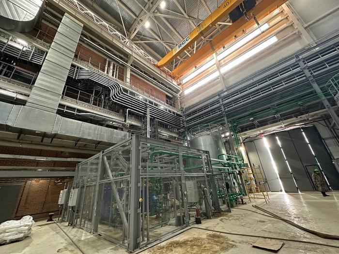 На заводе полностью закрыт тепловой контур главного корпуса. Смонтировать оборудование газоочистки, паровой турбины и генератора, электротехническое оборудование, а в котельном отделении уже проходит пусконаладка. Снаружи завершены все земляные работы, подземные коммуникации и кабельные трассы. Готовы грузовая проходная и весовая.