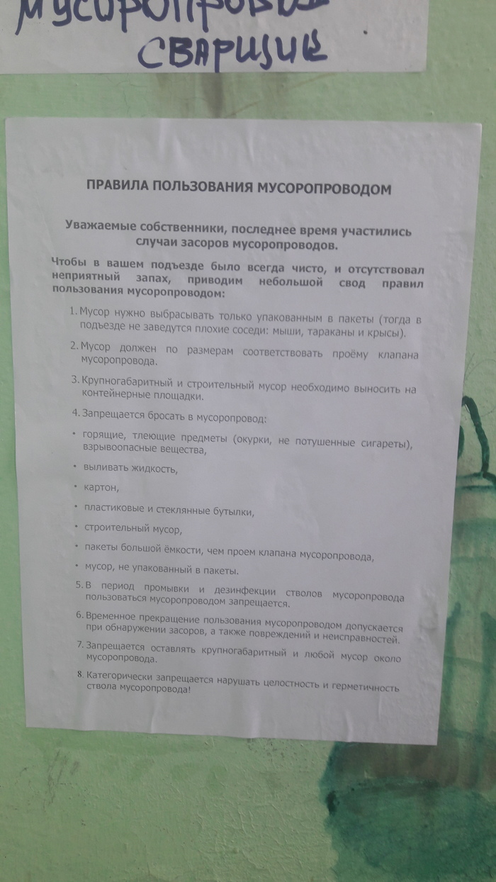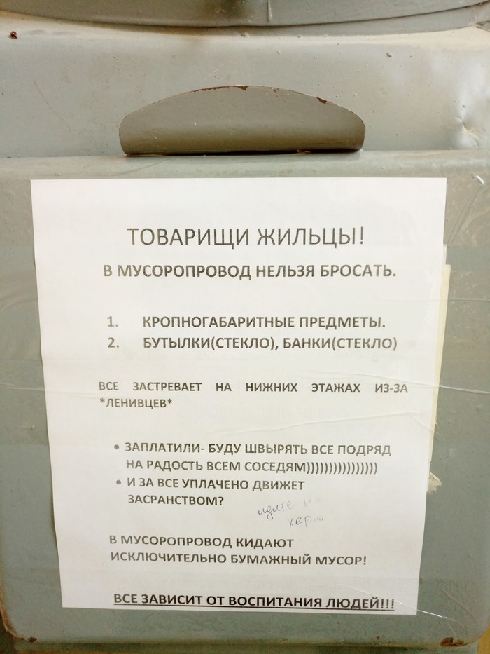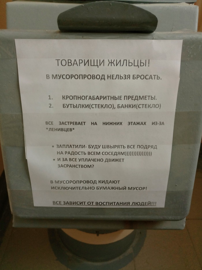 Жители квартир с мусоропроводом о том, завидовать им или сочувствовать