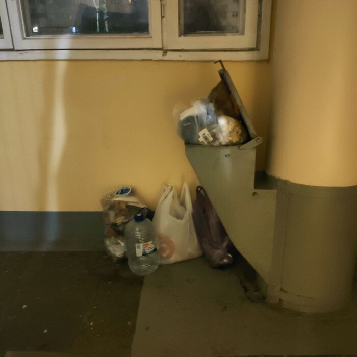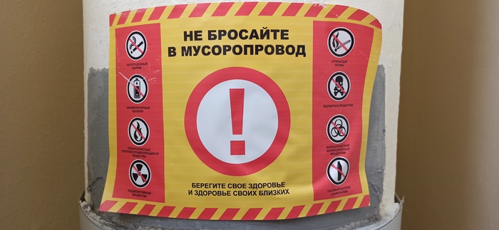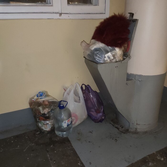 Зато выставлять пакеты в общий коридор, бросать мусор из окна это типа норм. Хотя в нашем доме типа крутой мусопровод с системой очистки (там круглая щетка с тяжелым грузом которая сверху спукается - поднимается) и мы платим бОльший тариф потому что мусопровод есть. Дворники без национальности устраивают склады собсвенного барахла в помещениях для сбора мусора