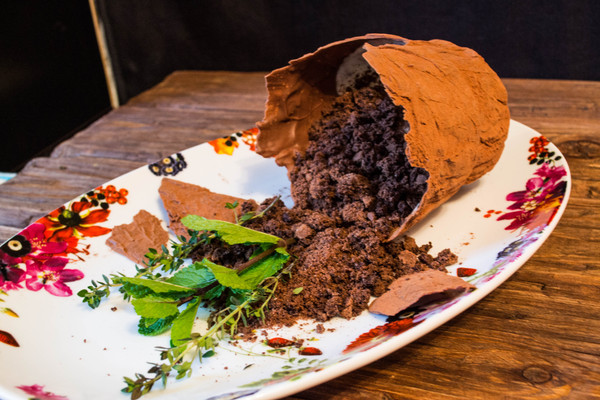 Ну и бонус. Чисто для себя - "мамин любимый цветок". Кто в Питере живёт скорее всего слышал про этот десерт, подаётся в ресторане Шнура. Подача "вау", а вот вкус по мнению весьма авторитетного кондитера спб - не айс. Сам не пробовал, ибо фиг попадёшь в этот ресторан в обычное время. В итоге сделал сам, единственное начинка муссовая (не знаю как там, вроде мороженое) и без добавления красного перца.