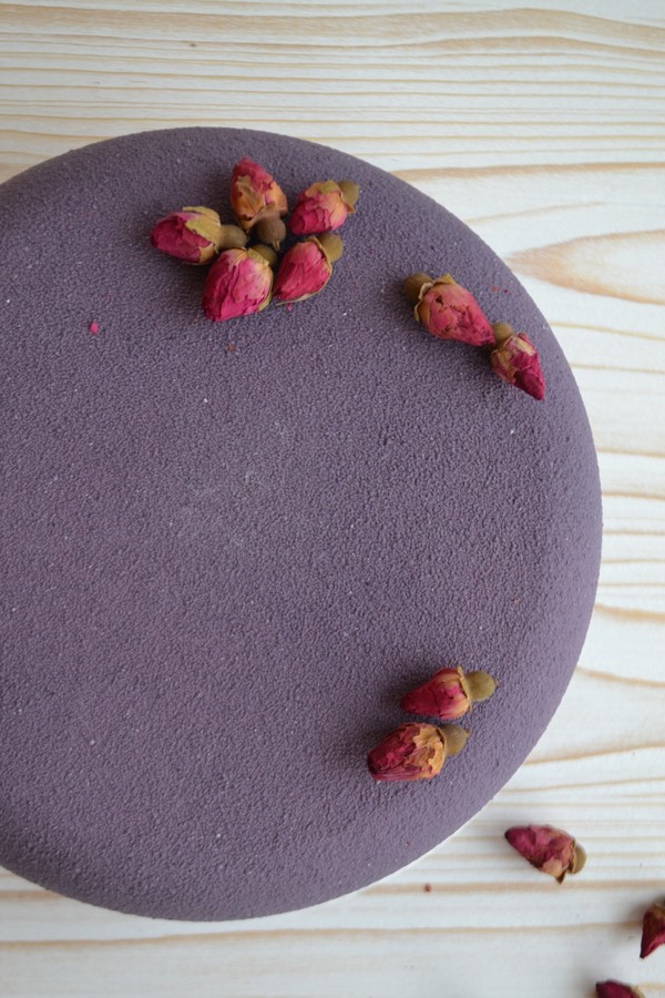 Покрытие торта - велюр. Долго мучалась и осваивала краскопульт, но результат понравился больше зеркальной глазури.