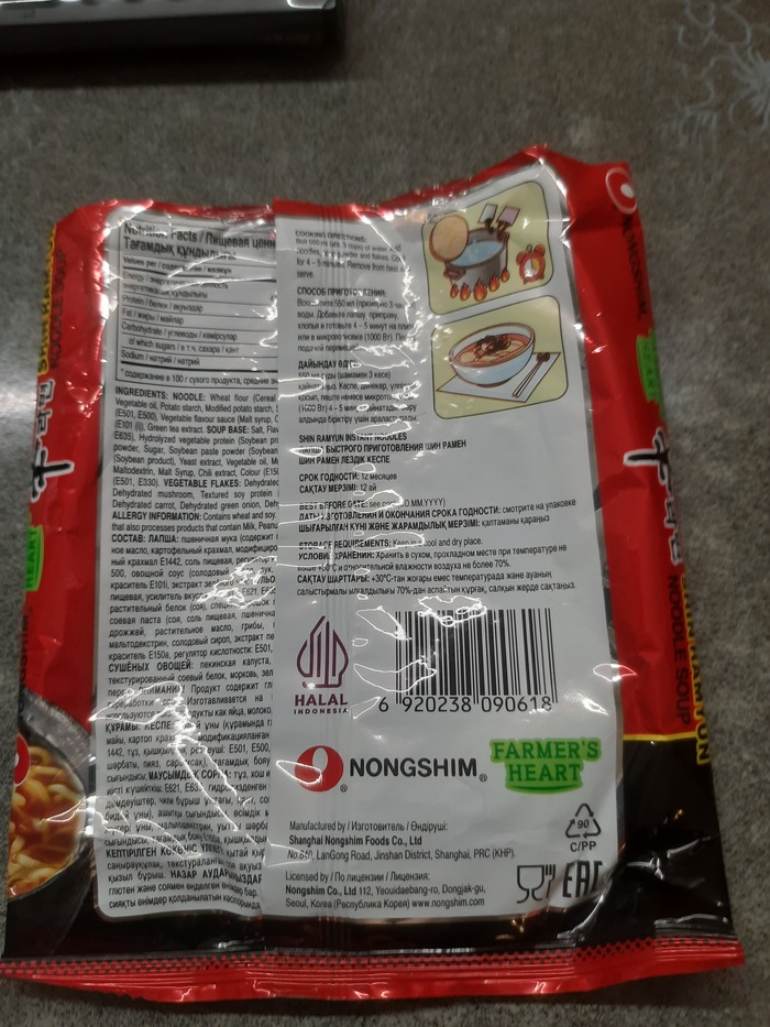 Для адептов нехаляля пишу сей пост. Вот купил один из моих любимых дошиков, точнее нормальный рамен, как положено, с варкой в кастрюльке. Так вот, для некоторой части Индонезийской аудитории, у которой плохо в принципе со всём на этом свете, кроме немотивированной агрессии, мании величия и ЧСВ в ультимативной стадии мы видим пометочку - Халяль Индонезия. Всё! Без всяких указаний мушаратов и хайрасатов немыслимых душанаков - просто пометка. Как для дураков. Мол, можно жрать, не тупи.