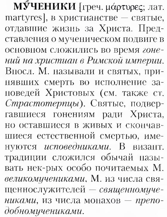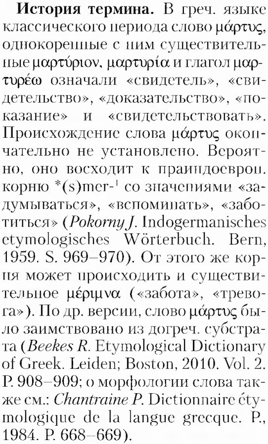 Здесь говорится о каком-то свидетеле верном и истинном. И следом за этой ссылкой на стих указывается какая-то книга... И по этой ссылке опять ничего не найти... Какие-то дикие сокращения названия, по которым даже не установить язык названия... Вот я и добрался до середины рассматриваемого абзаца статьи... И что, чёрт побери, здесь понаписано?! Какое отношение к слову "мученик" это всё имеет?! Уффф... Хорошо. Пока всё. Продолжение следует.