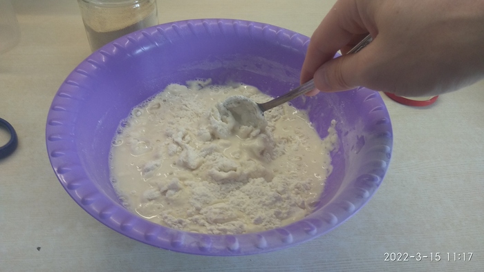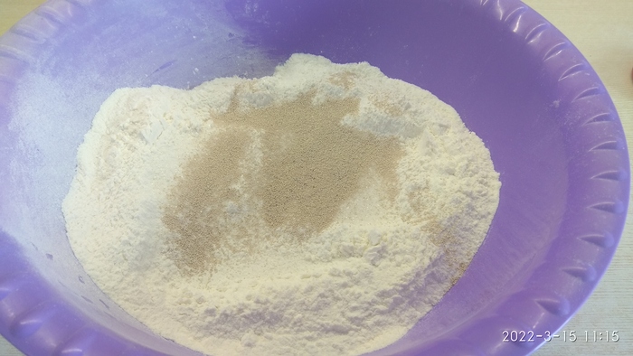 Перед добавлением воды всё перемешать. Воду лить тёплую, чтоб дрожжам комфортно было попёрдывать газиками.