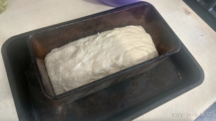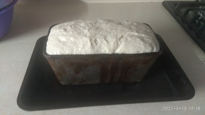 Опять ждём когда тесто подойдёт в форме. Часа 3-4-5. Главное не прощёлкать момент когда тесто уже не сможет подходить. Лучше даже заранее ставить в духовку, там оно дойдёт, получится пышная красивая корочка. Если перестоит в форме, то в духовке уже не поднимется или даже опадёт. Будет не то.