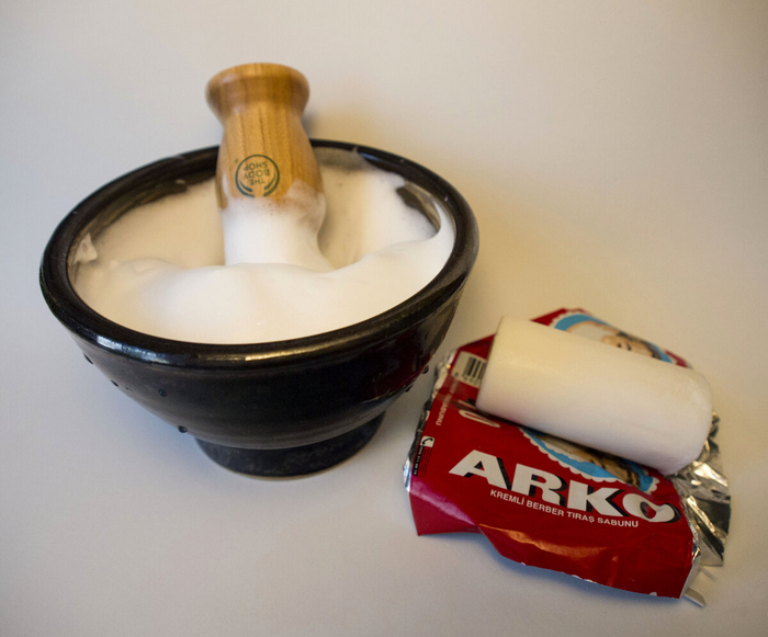 Если мы говорим про классическое влажное бритьё, то многие пользуются пеной взбиваемой помазком из бритвенного мыла или крема. У такой взбитой пены есть ряд плюсов: