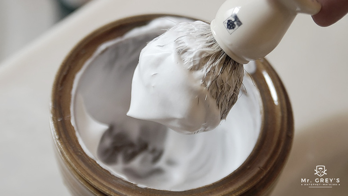 Нужно ухаживать за помазком. Например, замачивать (если он из щетины кабана или барсука). Промывать его после бритья, вытирать об полотенце.