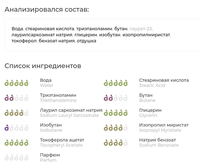 Обошлась она мне около 80₽ за 450мл (покупал несколько лет назад в Светофоре). Скажу сразу, что я сравнивал между собой пены Evolux, Proraso, Nivea, Barbasol и разницу увидел только в цвете и разных отдушках, а характеристики и базовый состав у них одинаковые (отличаются только добавки типа "экстракта зелёного чая" и прочих примесей, от которых я не ощутил никакого толка🤷♂️). Состав пены: