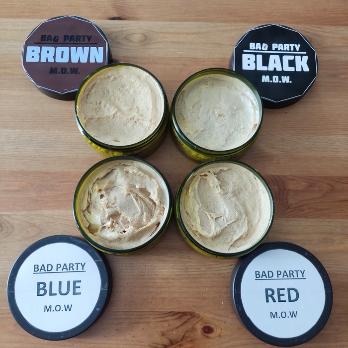В конце апреля Юрий стал варить очередную партию мыла на базе 10-ка. Но, по случайности, часть его "сбежала", как сбегает молоко. Тем не менее, Юрий довел начатое до конца, в результате чего появилось на свет это мыло. Но это была не 10-ка. Кто пробовал мыло на базе 10-ка знает, что оно довольно плотное, как пластилин. Тут же получился кроп, это нечто среднее между кремом и мылом. Отсюда и название "BAD PARTY" (плохая партия). Я лично назвал бы его "BEST PARTY" и ниже объясню почему.