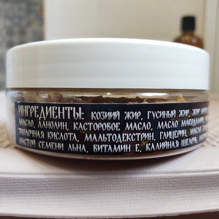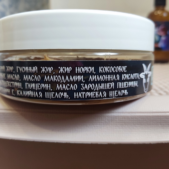 Состав очень богатый. Как сказал сам Юрий, в своем видео по данному мылу, оно сварено на 45-й базе, с добавлением жира молодых козлят, что сильно повышает его уходовые качества.