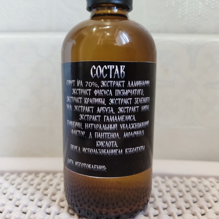 По результатам проведенного Юрием опроса в Телеграмм-канале, большинство участников предпочитают сильно спиртовые лосьоны, от 50% и выше. Тем не менее, он решил сделать лосьон с содержанием спирта всего 15%. И не зря.