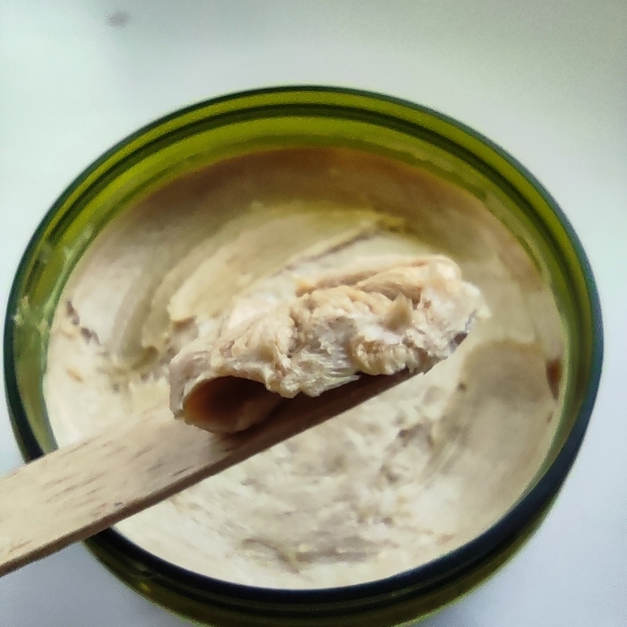 Мыло темного цвета, средней твердости, набирается ложкой без труда.