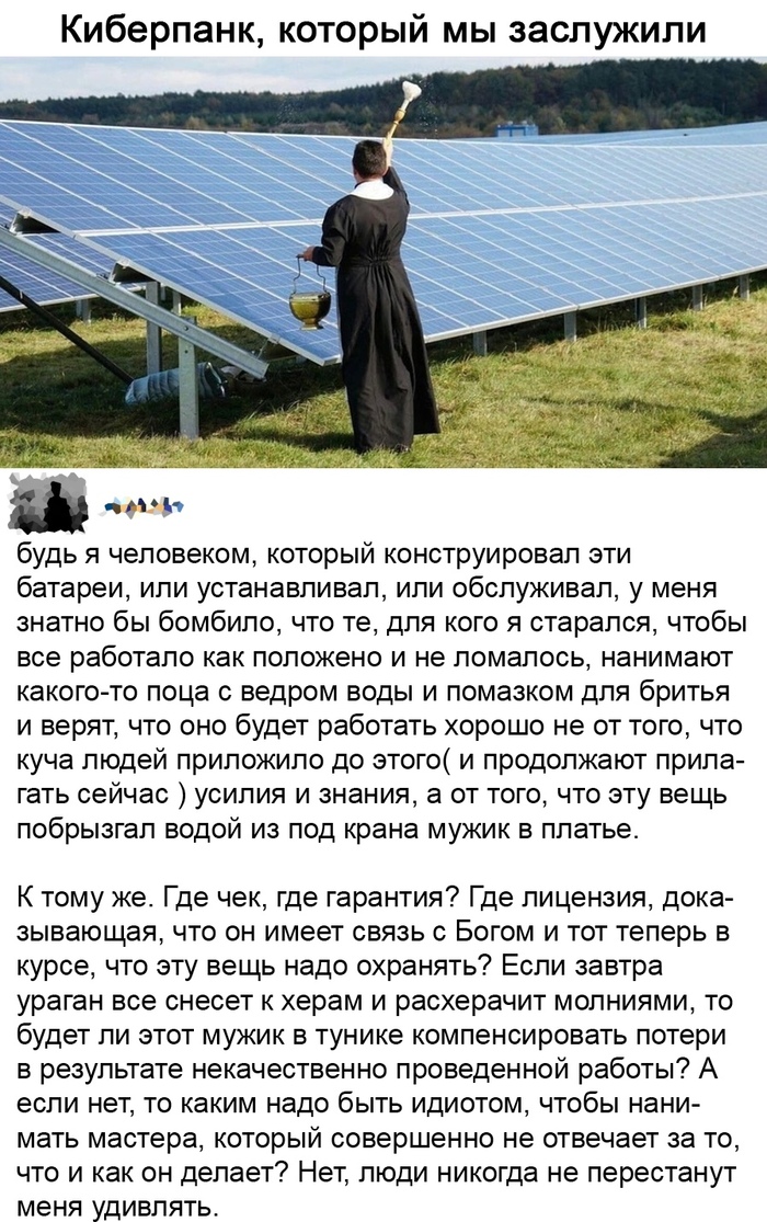 Причем хочу заметить что в России сегодня это очень развито. И я даже знаю почему. Сотни лет крестьяне верили (в бога, в природы, в приметы, в календарь урожая), а 20 век резко выдернул у них из под ног это - опору. Боженьки нет, есть трактор и агроном. А привычка верить - осталась... Целая культура веры. Естественно они нашли себе новый предмет теперь верят во все около научное. Как говорится - можно вывести девушку из деревни, но деревню из девушки - нет.