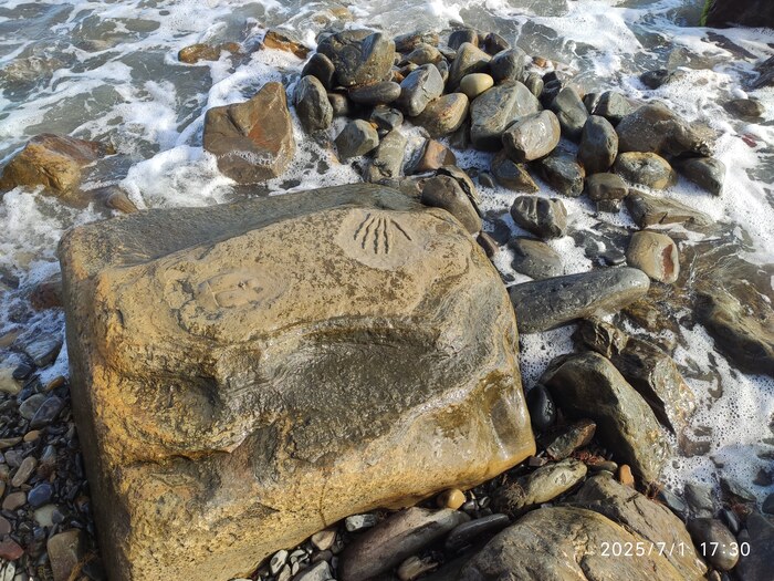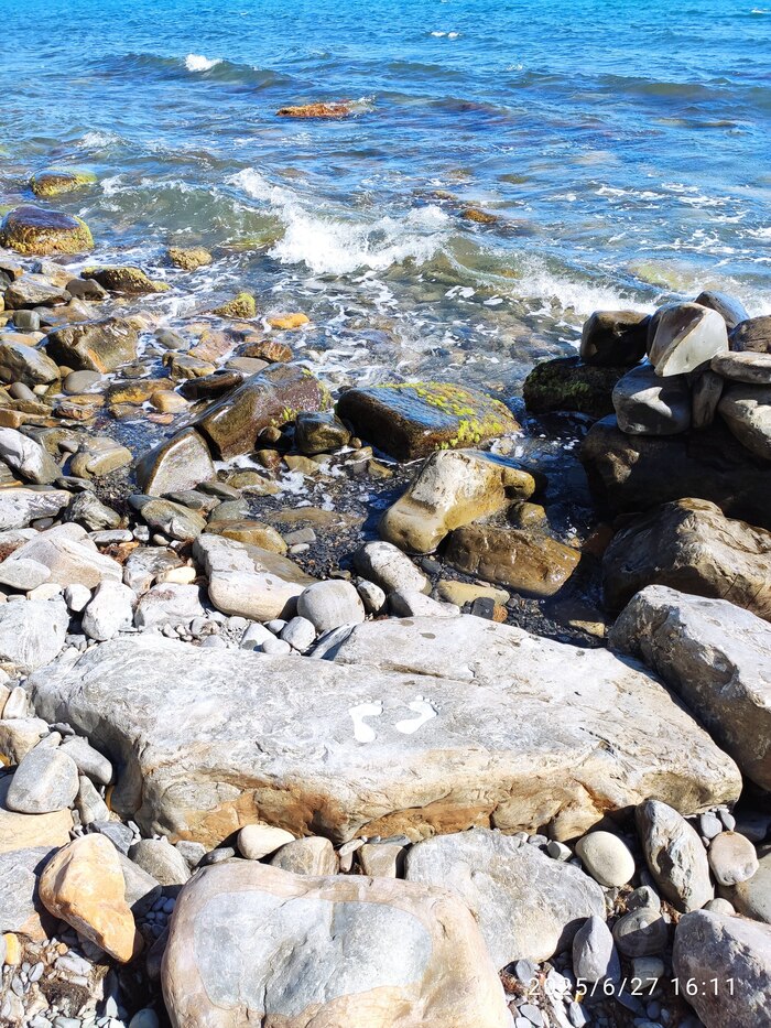 Местные старожилы (нудисты) сказали, что, скорее всего за зиму шторма завалят изображения булыжниками, и это похоже на правду, т.к. каждую весну наблюдаю что конфигурация берега меняется.