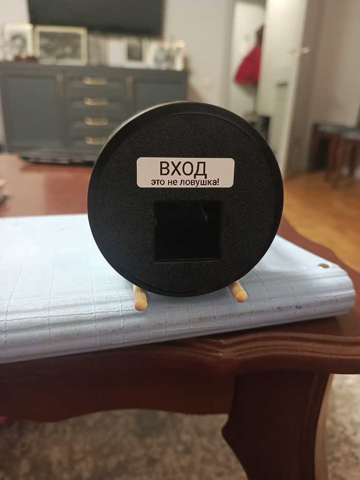 Сегодня на кухне готовлю еду, в квартире обычной девятиэтажки. И тут, у меня между ног проскакивает мышь! Я в шоке, кричу и зову мужа. Нужно расправиться с ней, живём в чистой квартире, хороший район и хороший дом. Решено установить мышеловку. А где их вообще покупают? С озона 3 дня ждать... Муж решил на 3д принтере напечатать мышеловку. Собрал устройство с помощью стеклянной банки, черной изоленты, палочек для роллов.