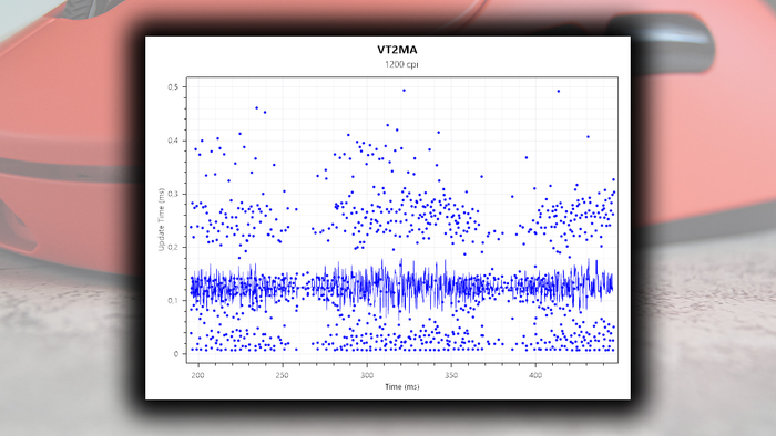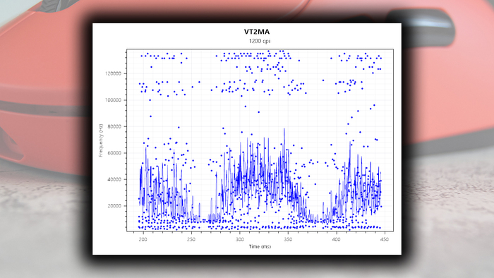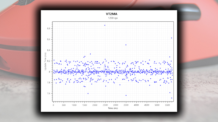Проведем технические тесты Rapoo VT2 Max. Мышь подключена к ПК через USB-передатчик, чувствительность установлена 1200 DPI, а частота 125 Гц.