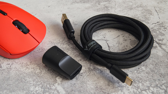 Комплектный кабель в основном предназначен для двух задач: подпитки энергией и работы в качестве удлинителя для ресивера. Его нельзя назвать сверхмягким — по гибкости это типичный "средний класс", но, учитывая беспроводную направленность модели, это едва ли можно считать недостатком.