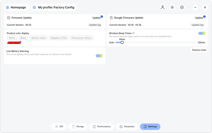 Приложение позволяет настроить таймер перехода в режим сна, что критически важно для сохранения заряда аккумулятора. Здесь же происходит обновление прошивок как самой мыши, так и беспроводного модуля. Большим плюсом является наличие энергонезависимой памяти: один раз откалибровав VT2MAX под себя, вы можете смело подключать её к любому другому компьютеру — все профили и настройки «переедут» вместе с девайсом.
