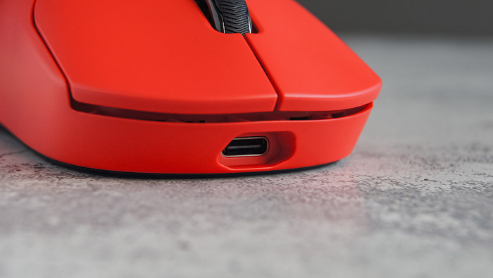 Фронтальный торец несет на себе интерфейс USB-C для зарядки и проводного режима. Гнездо вмонтировано по центру и слегка утоплено вглубь.