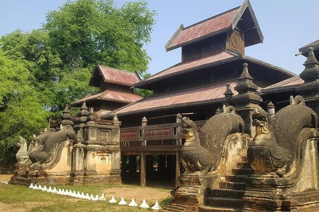 На крышу залазибельный, небольшой храм Мьинт Мо Таунг, один из выживших в результате большого землетрясения 1839 года в Инве, столице бирманского королевства Ава. Конусообразная "пироженка" на заднем плане - ступа Лока Дота Манаунг.