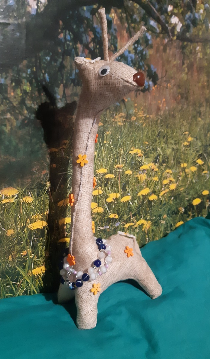 Доброй ночи. Хотела я вот прочитать книгу, но стала смотреть фильм.. Ручки потянулись за тканью и в итоге начудила жирафика под будущие браслеты из натурального камня.