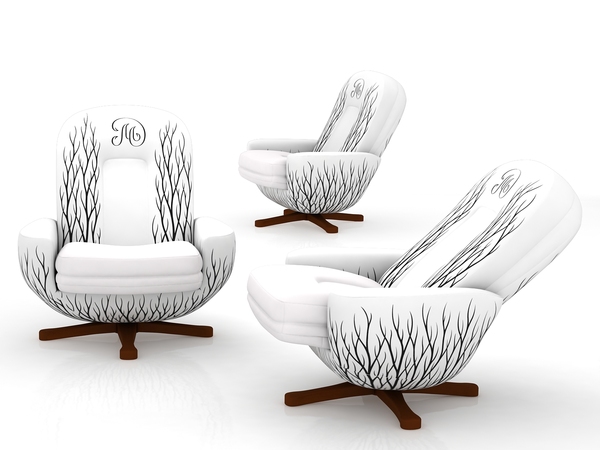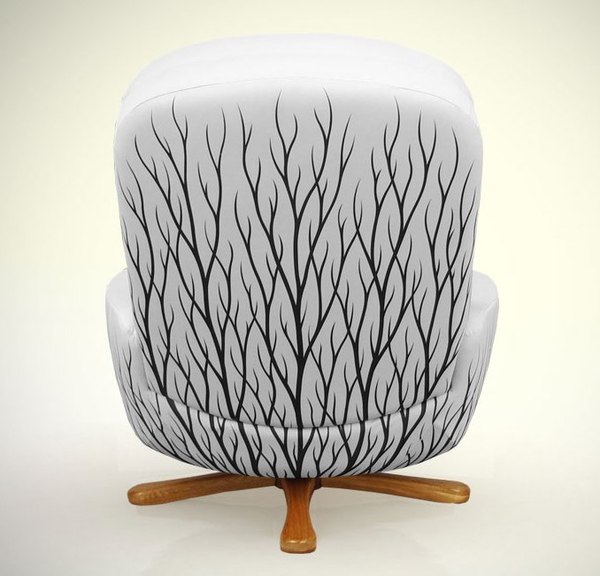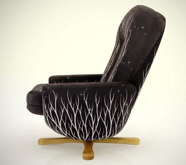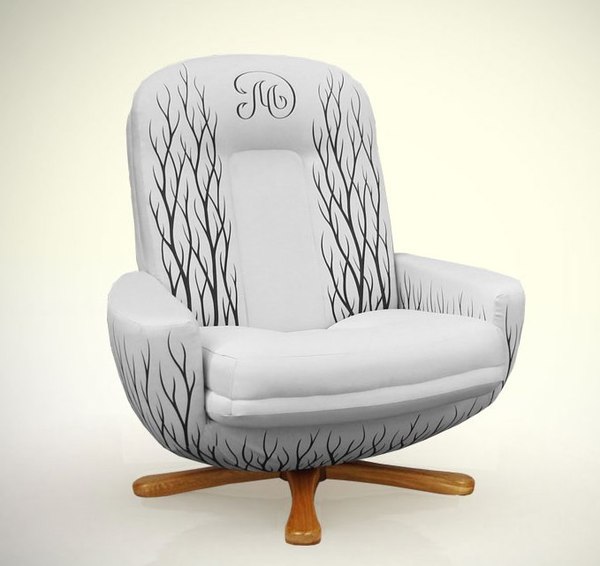 Тут мои только черное и белое кресло с ветками. На этом изображении я пробовал технологию и после того как перенес рисунок, просто инвертировал его. Зеленое и красное кресла не мои, эти изображения вдохновили меня действовать этом направлении.