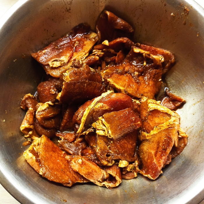 Смотрим, что получилось, важно чтобы приправы были распределены равномерно, я потратил примерно 5 минут на замешиваение, чтобы каждый кусочек был равномерно в приправе.