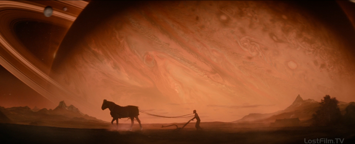 В прошлом посте мне тут подсказали по поводу размеров урожая. Как мы помним, в деревне живут примерно 80 доходяг, которые из принципа на земле работают только деревянными инструментами и лошадьми. В начале первого фильма они говорили что за сезон могут собрать примерно 12 000 бушелей зерна, из которых 10 000 потребовал себе адмирал. И знаете что? 10 000 бушелей зерна - это примерно 352 тонны. То есть получается, 80 доходяг сначала должны собрать для Адмирала 352 тонны урожая вручную. Затем мы понимаем, что нигде больше в обозримом космосе не найти этого сраного зерна в наличии, раз уж пришлось обращатсья к доходягам.