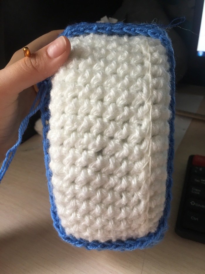 Поделив заготовку на 3 части , по нижней 1\3 вяжем воздушные петли (Верх костюма будет пришиваться нитками , а не привязываться к заготовке!) и оплетаем все столбиком.