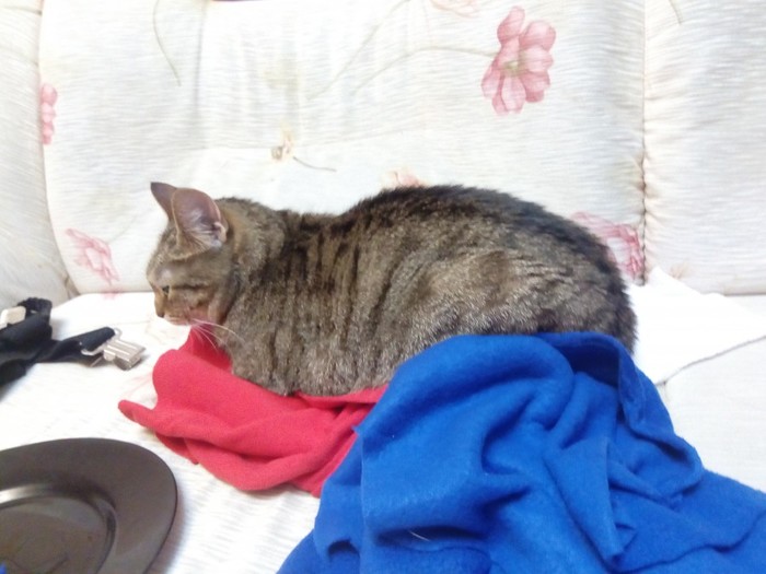 у меня был синий и красный флис, много свободного времени и ниток, и я просто докупила белый)