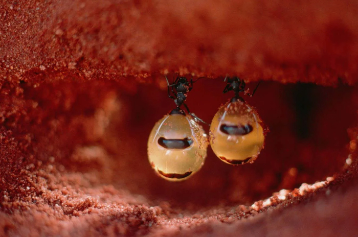 Медовые муравьи похожи на обычных муравьёв, но за одним серьёзным исключением. Они обитают в регионах с довольно специфическими условиями. Большую часть года здесь стоит страшная жара, воздух сух, а растения практически отсутствуют. В общем, их ареал — пустыни и полупустыни по всему миру! Зато в сезон дождей растительность расцветает как нигде, всё вокруг цветёт и плодоносит, и ресурсов вокруг больше, чем любая, даже самая крупная колония муравьёв способна переработать.