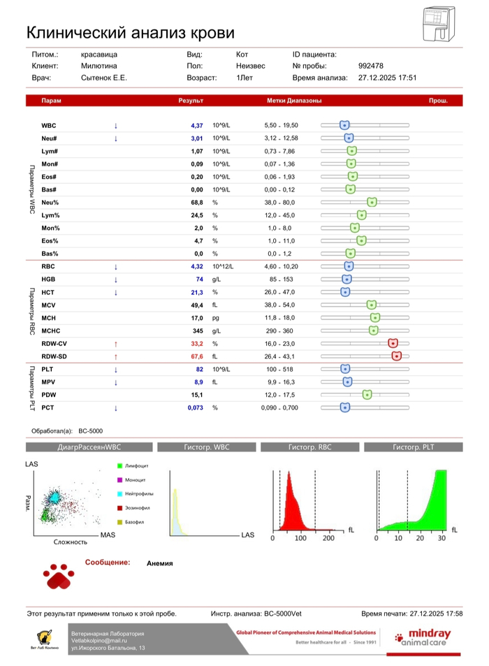 Лейкоциты понижены, сразу сдали экспресс тест на панлейку, отрицательный, сдали на железо.