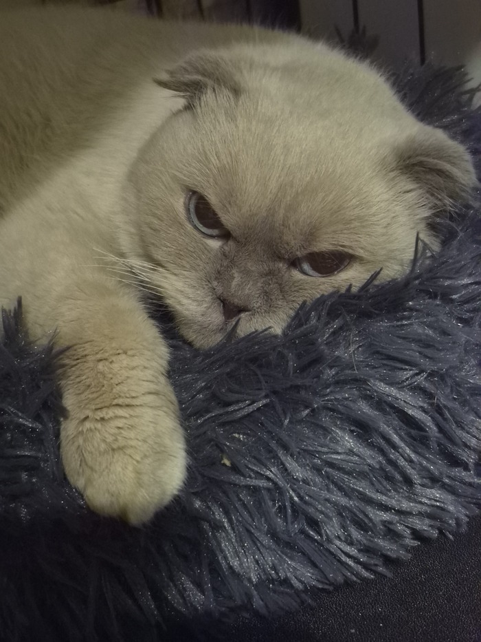 Вислоухие кошки подвержены разным патологиям и самая ужасная ОХД (Остеохондродисплазия) — это генетическое заболевание, характерное для шотландских вислоухих кошек (Скоттиш фолд), влияющее на развитие костей и хрящей, вызывающее деформации скелета, боль и хромоту, из-за чего такие кошки не должны вязаться друг с другом.