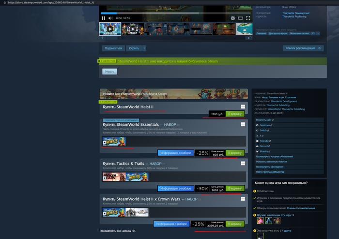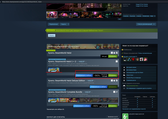 Страница игры в Steam