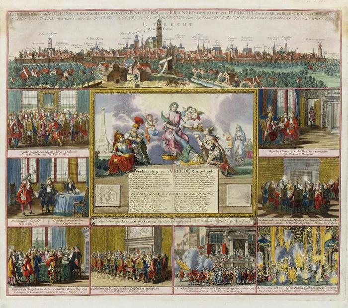 Аллегорические рисунки, символизирующие подписание Утрехтского мира в 1713 году