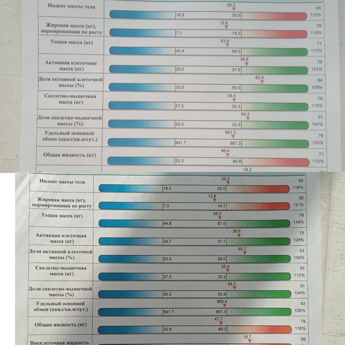 Поэтому записывайте тренировки и отслеживайте результаты, подойдет что угодно: калипер, метр, биоимпеданс. В зависимости от них корректируйте число подходов в большую или меньшую сторону.
