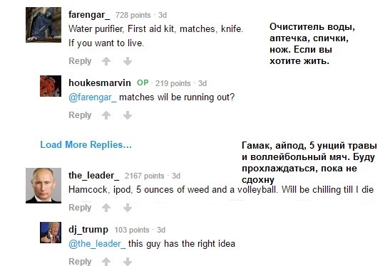 Вы сели на мель (очутились) на необитаемом острове, можете выбрать 4 предмета из нижеперечисленных.⁠⁠