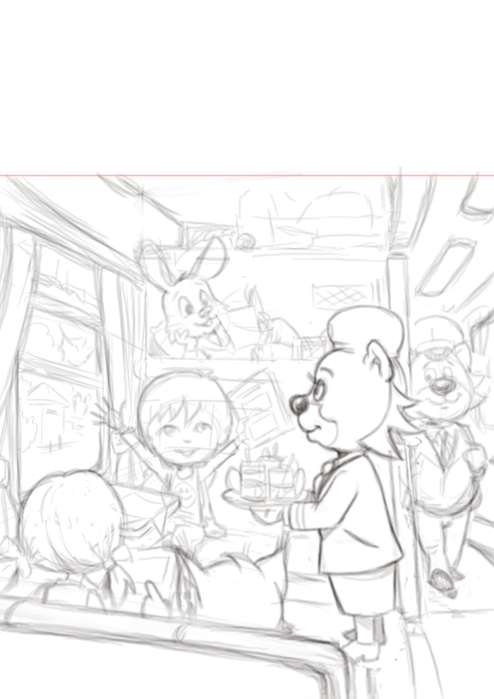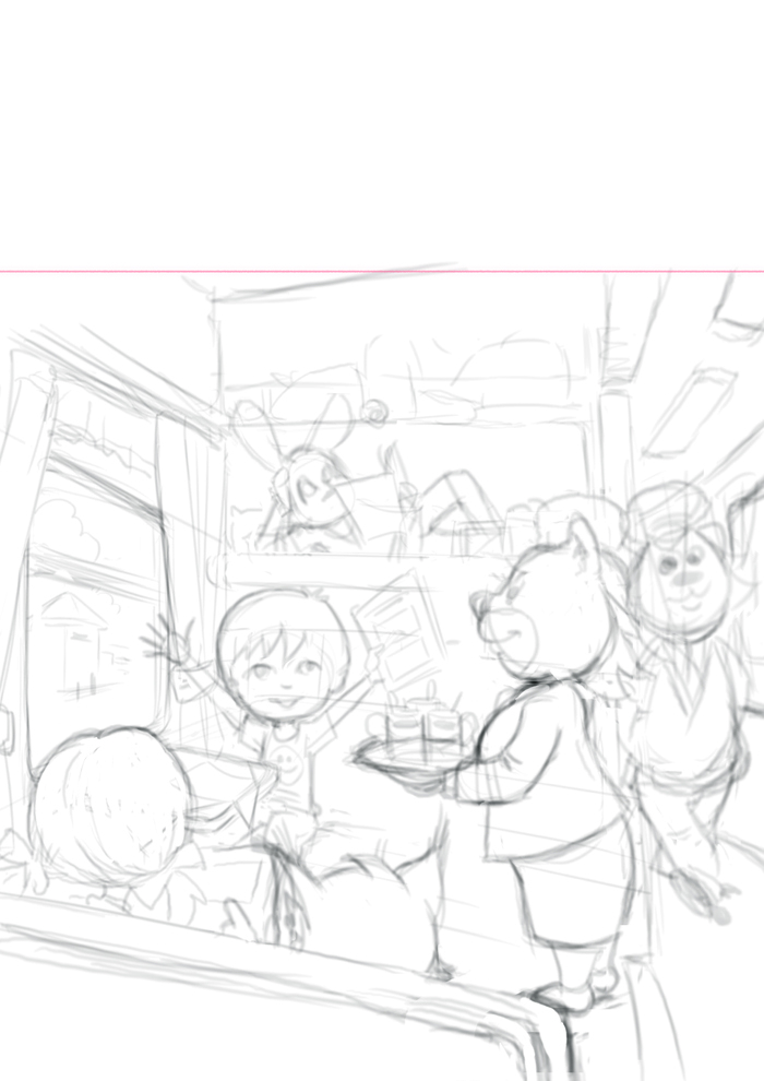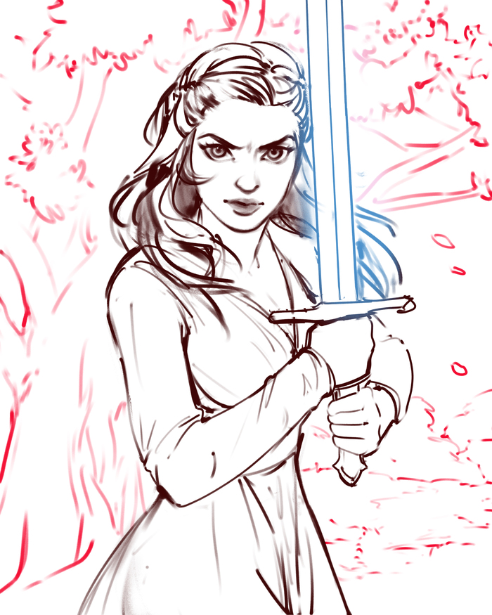 Набросок и конечный вариант арта на обложке книги.