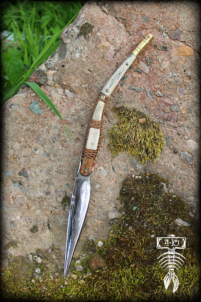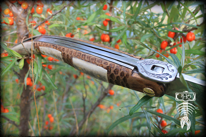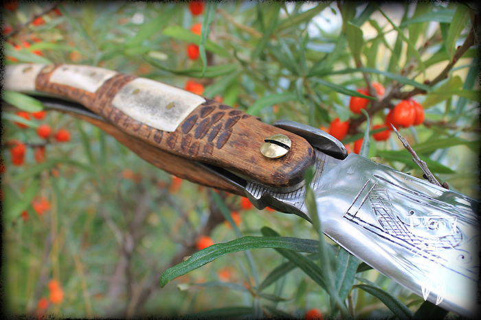 Испанский национальный складной нож наваха... Конечно же испанские навахи имеют весьма разнообразные формы и размеры своих рукояток и клинков. Издревле это зависело и от места их производства в Испании, и от мастеров изготовлявших эти знаменитые складные ножи и от прочих различных факторов. Но всё же одна из самых узнаваемых форм навахи сразу бросается в глаза. Это наваха-бандольеро, получившая довольно широкое распространение.