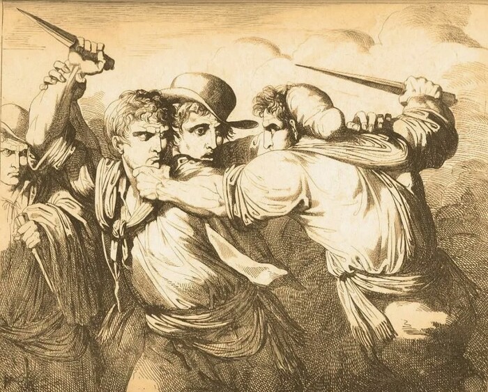 Но, как говорят современные маркетологи, и это ещё не всё! Опытные фехтовальщики после нанесения этого решающего удара, вгонявшего клинок в противника на всю длину, проворачивали свою наваху в ране. Это жестокое, но эффективное действие наносило ещё более тяжёлые повреждения и рана как бы «раскрывалась». Мы помним, что до изобретения антибиотиков были ещё долгие столетия. И поэтому даже если жизненно важные органы несчастного были не задеты, то шансы выжить у получившего такой изуверский удар были весьма невелики. Кстати, об этом «милосердном» способе завершения схватки, при нанесении колющего удара, упоминал, по словам его ученика, ещё почтенный дон Херонимо Санчес де Карранза, считающийся основоположником знаменитой Дестереза (La Destereza) - испанской фехтовальной школы.